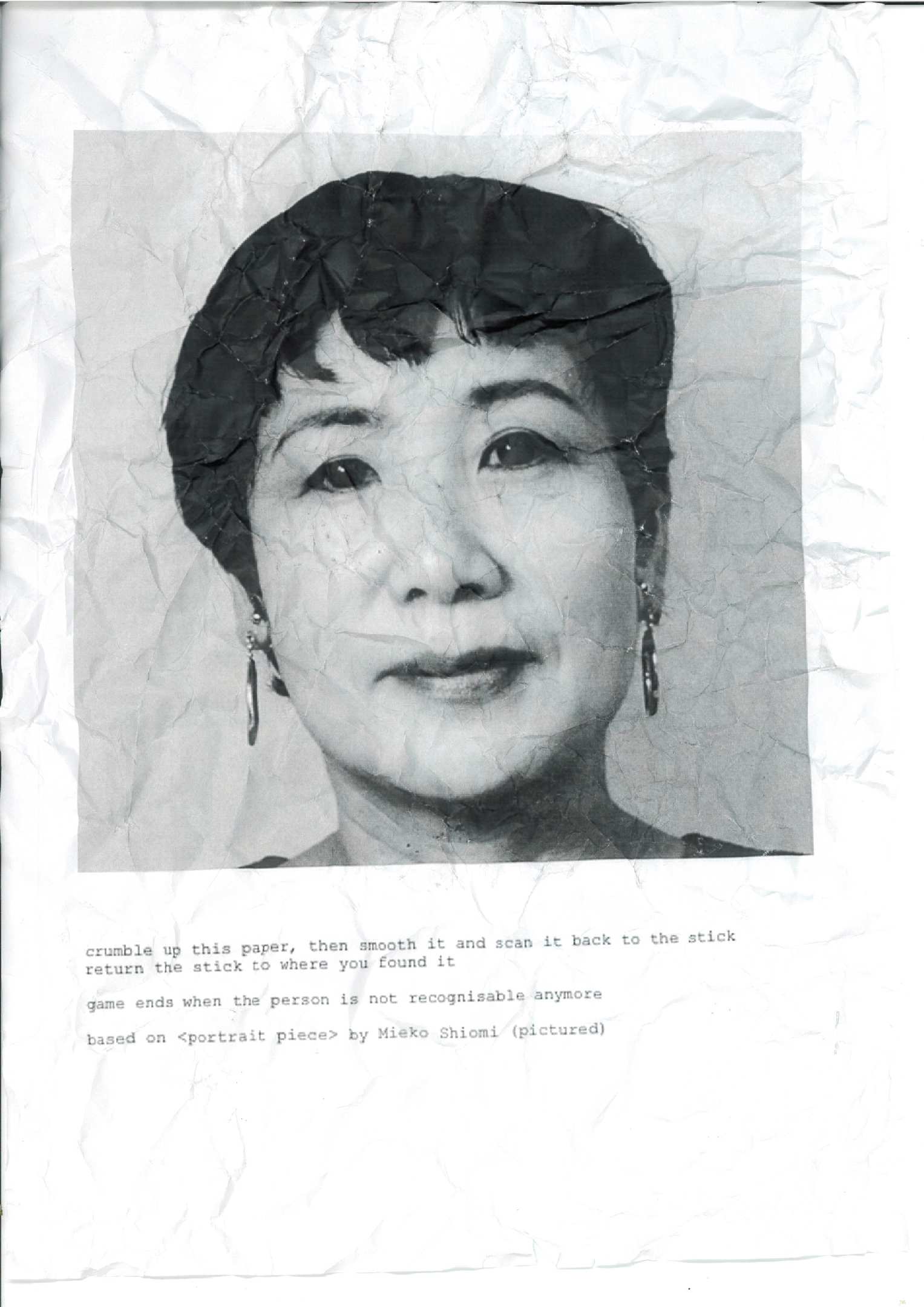 based on < portrait piece > by Mieko Shiomi